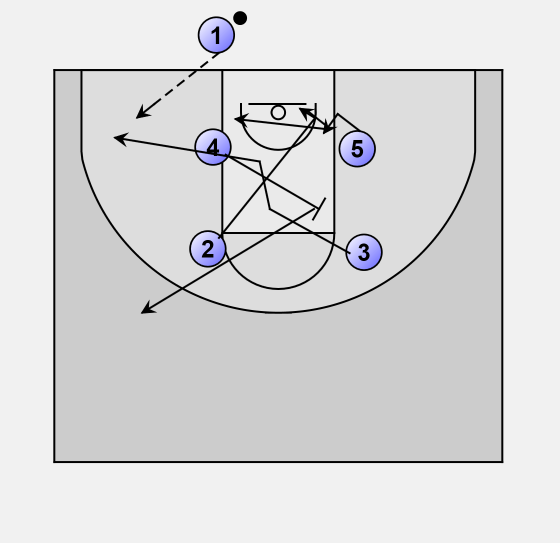 4 sets a screen for 3 and goes behind the 3 point arc for the skip pass.