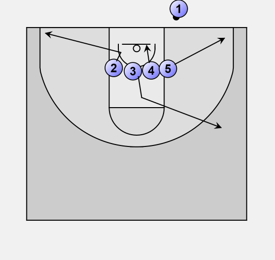 1 can give a signal like GO! and the pass to 2, 3, 4 or 5 depending on who is free.
