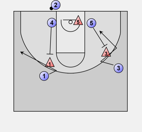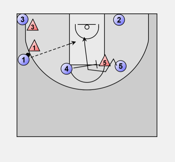 If the ball is passed to 1, then 4 sets a screen on the defender of 5.
