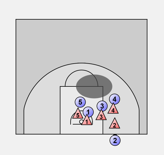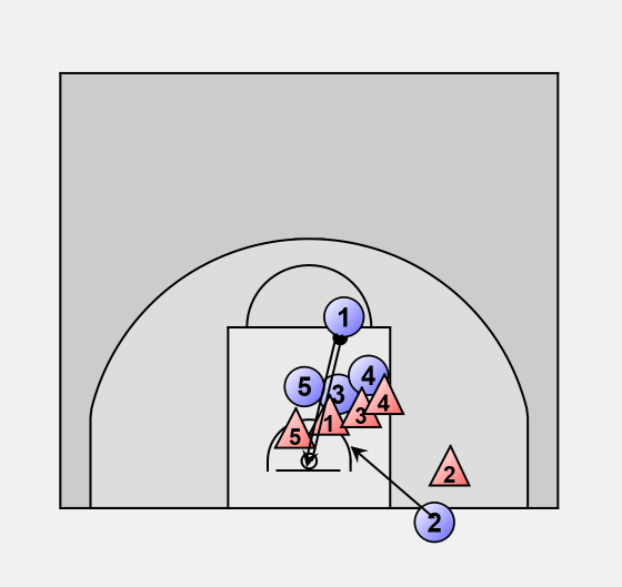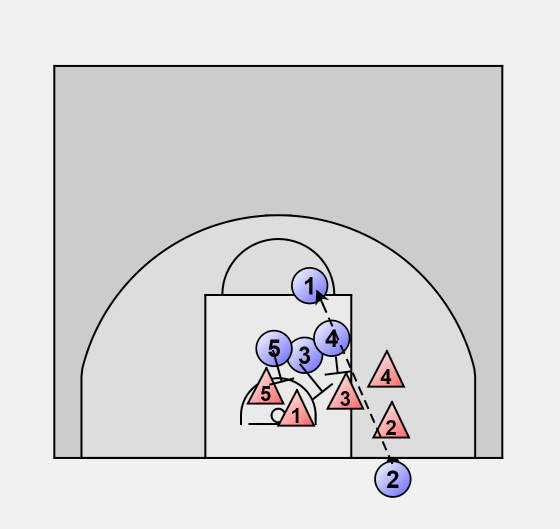 5, 3 and 4 screen off defenders as 1 pulls behind them and gets the ball.