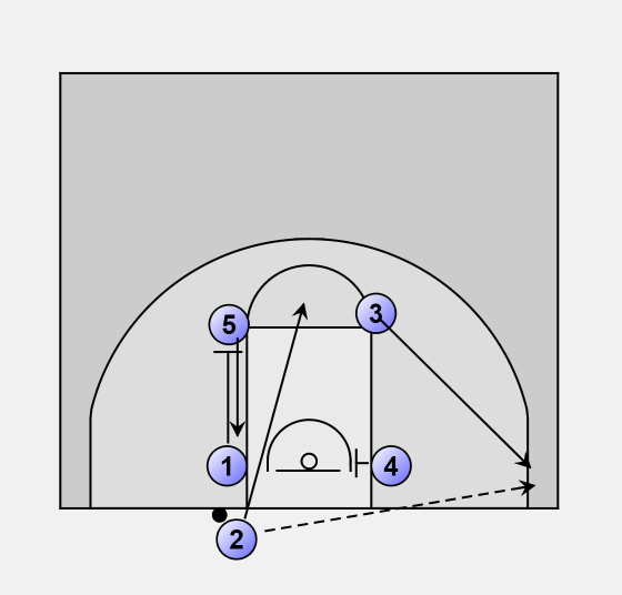 The play is set up for #3 to get a 3 point shot from the corner. If that is not available the ball #4 should be open for a shot at the low block.