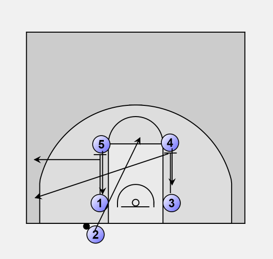 #4 and #5 come to low blocks using the screens set by #1 and #3