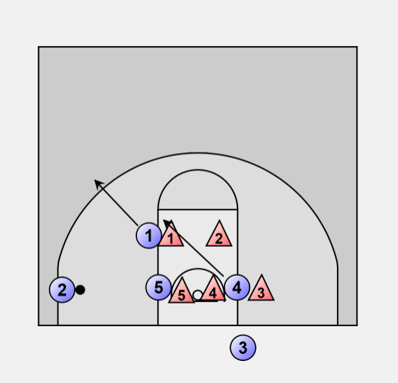 If D1 covers the dribble too low, 5 should be open at the high post.