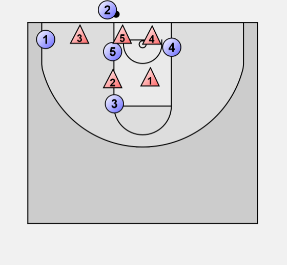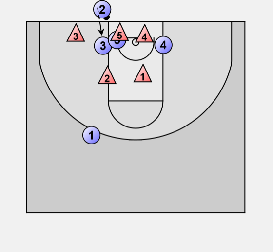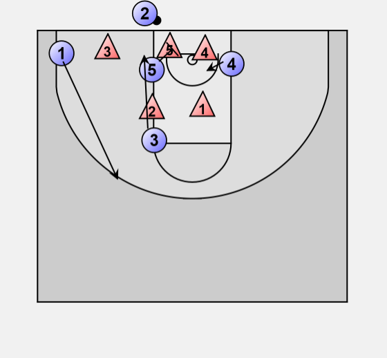 5 immediately screens #5 (ideal would be to screen him and put #5 under the hoop).