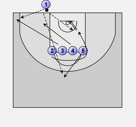 2) Players 2, 3, 4, & 5 line up shoulder to shoulder on free-throw line.