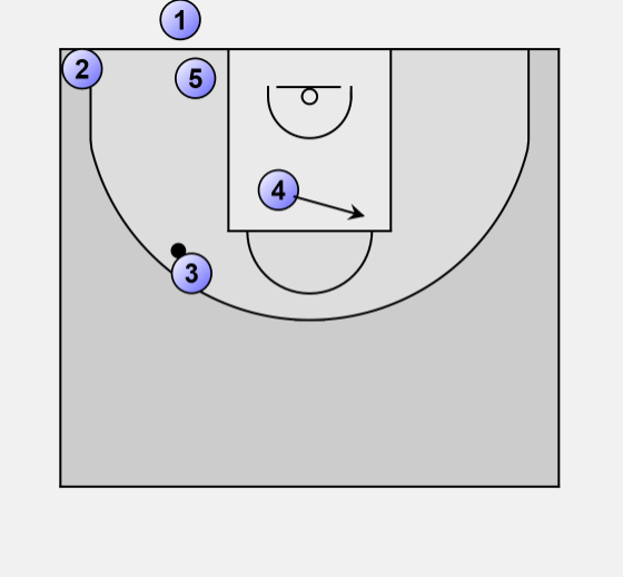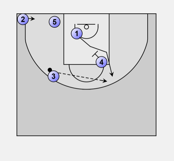 4 moves across the key and sets screen at the elbow for 1.