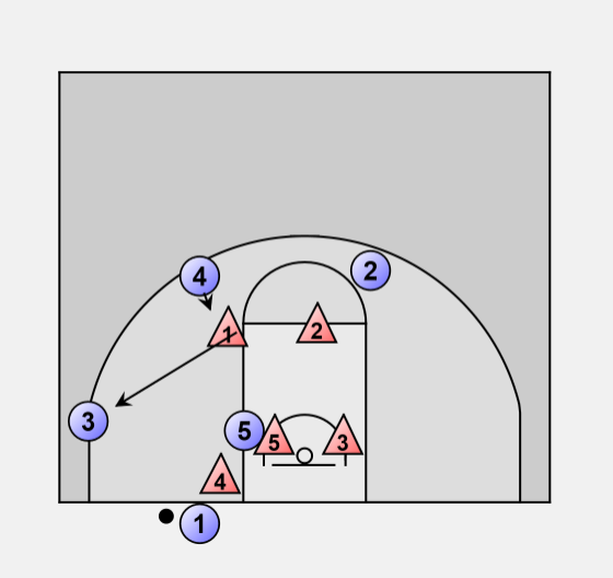 If the 1D goes to cover the 3, the 4 steps behind him for a short jumper.