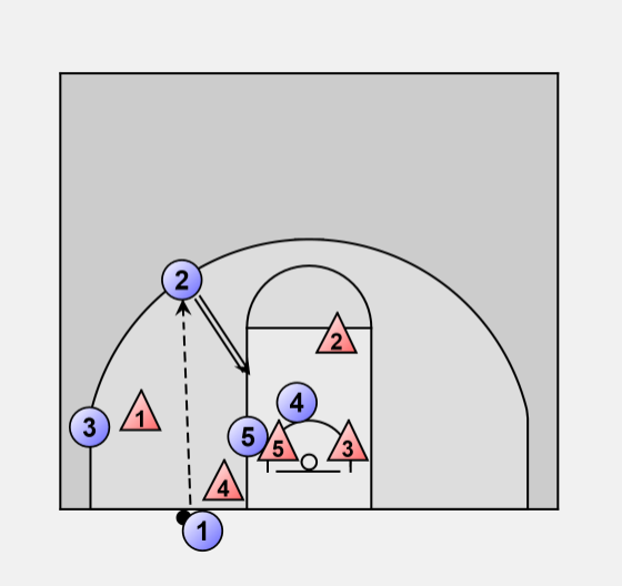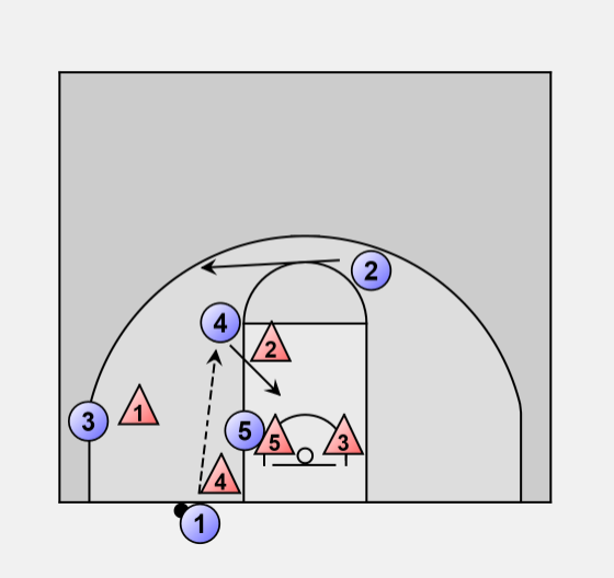 If the 2D recovers to contest the 4's shot, the 2 circles around behind the 4 for an open 3
