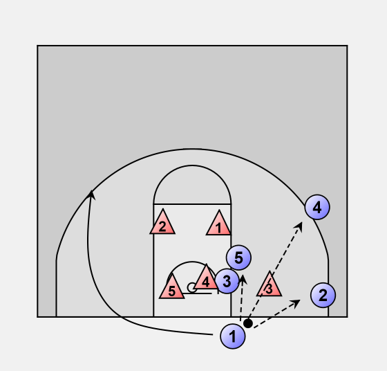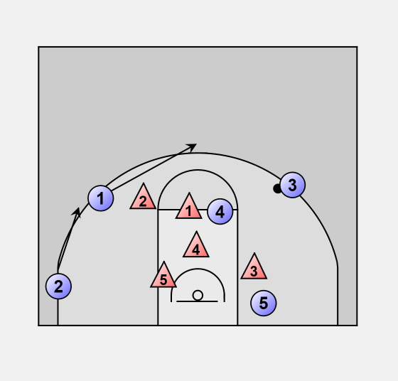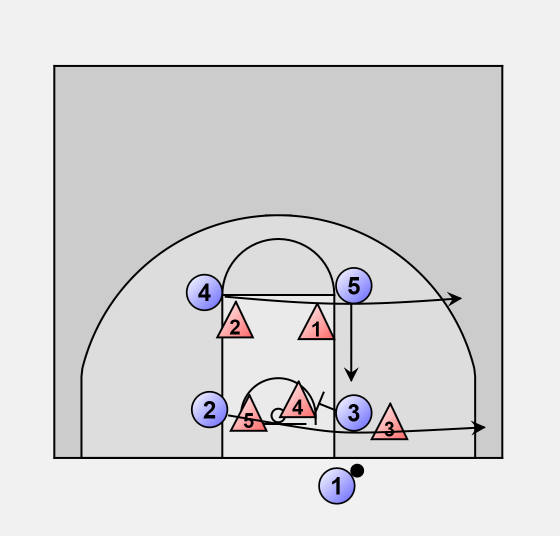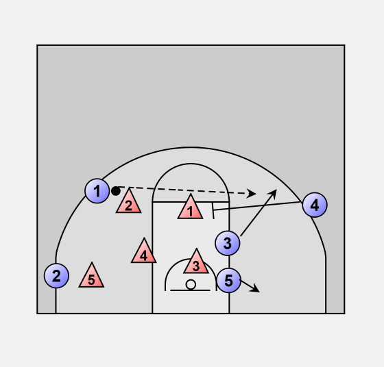 4 sets a screen for 3 for the ball back from 1. 5 steps out.