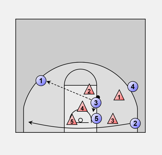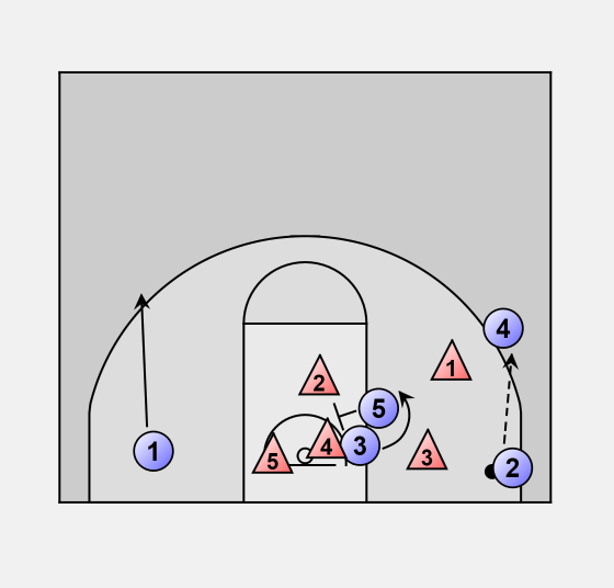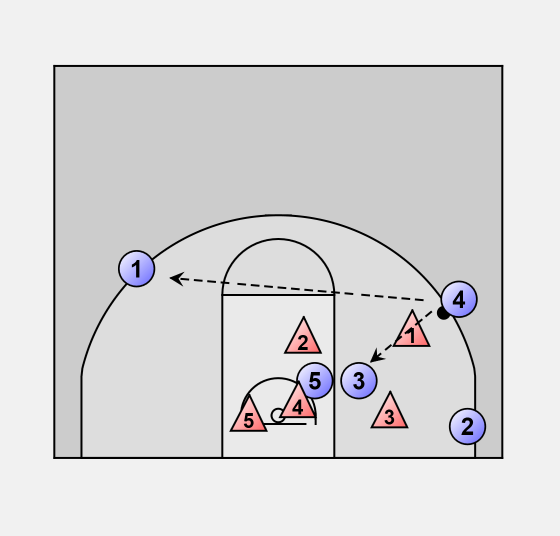 4 can pass in the low post to 3 or to 1 for the 3-pointer.