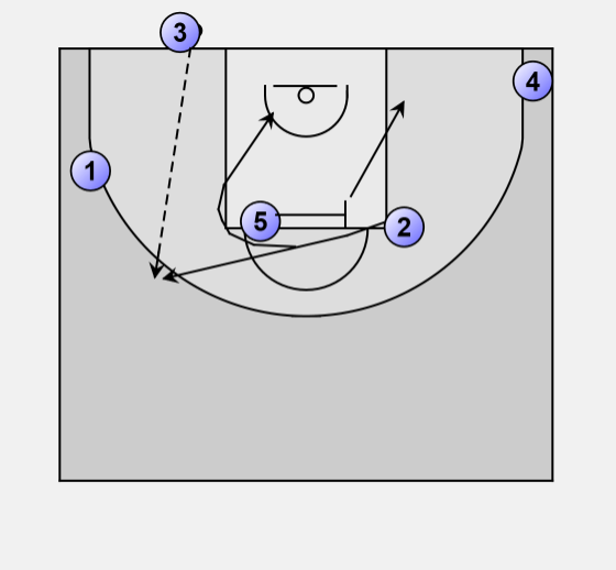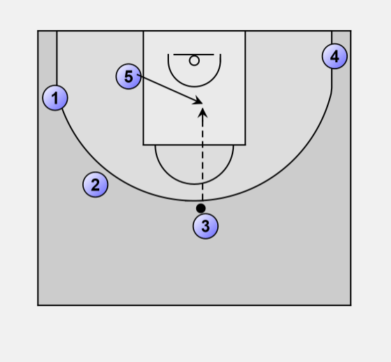 2 passes to either 5 or 3 who cuts to the top of the basket.