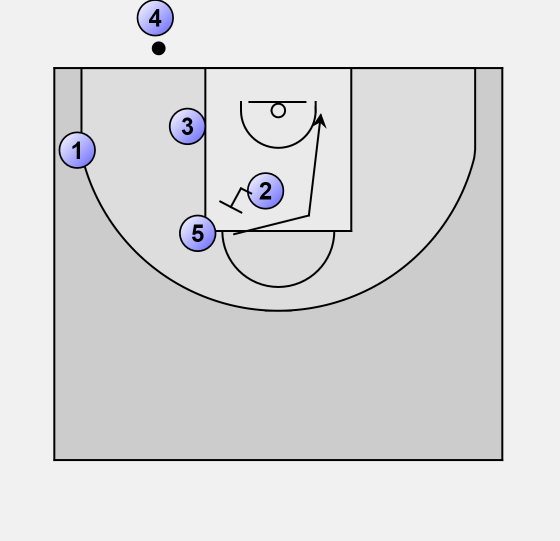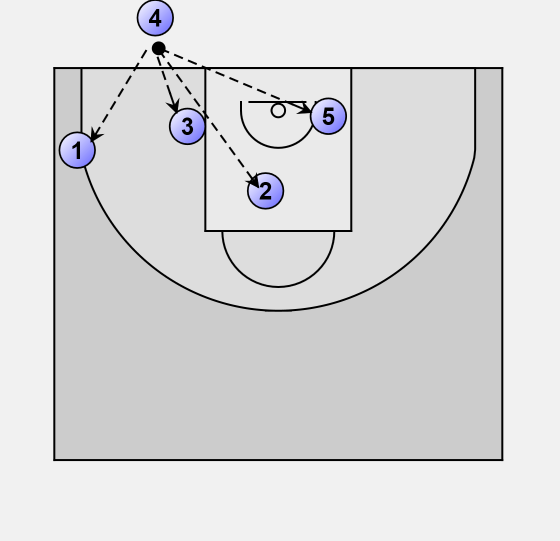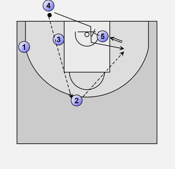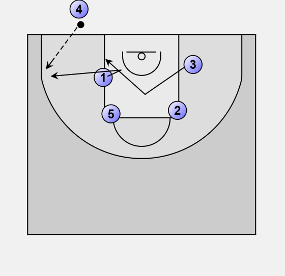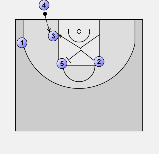 Player 3 flashes high and then back to the low post that 1 has left.