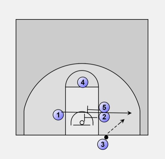 4 sets a downscreen for 2 who rubs off of 5 to get to 4's screen.