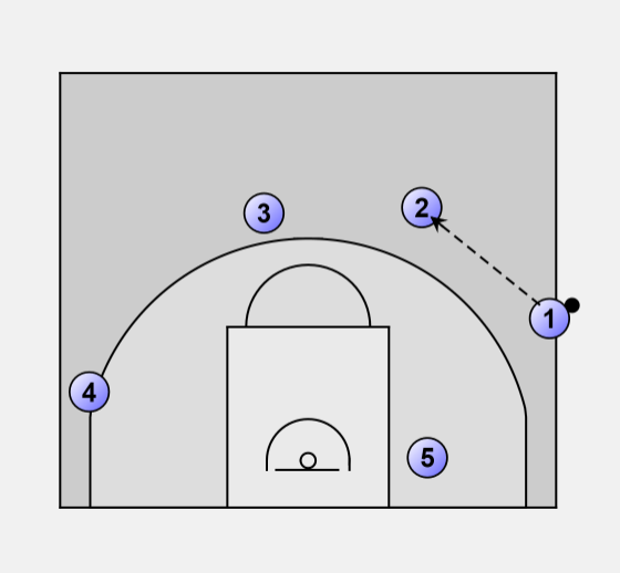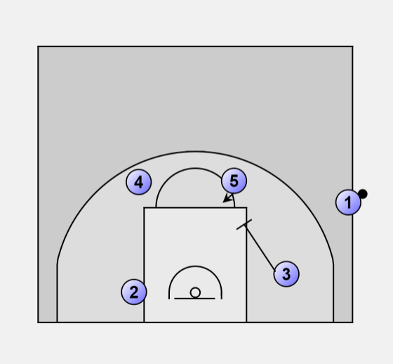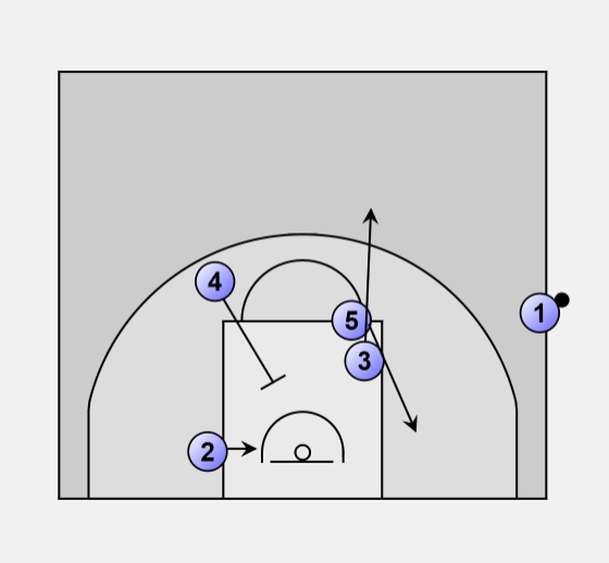 Weakside high down-screens and baseline player sets up their defender by stepping toward ball.