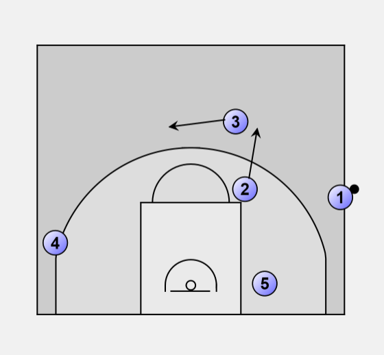 Player cuts to short corner off up-screen.  Screener pops out looking to receive ball.