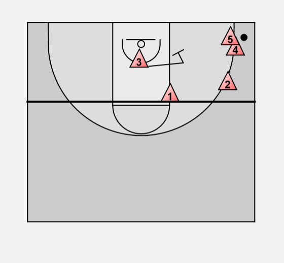 X2 will split the passing lane between the wing and corner reading the offense looking for the steal or deflection.