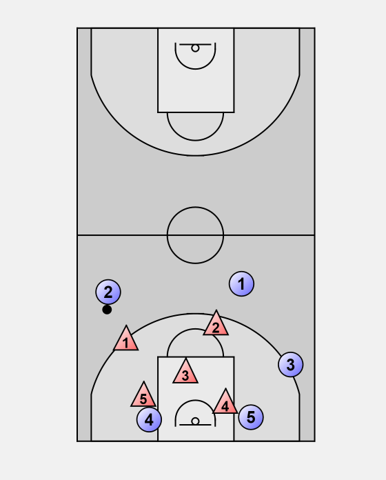 - 4 and 5 deny easy passes on ballside and under the basket.