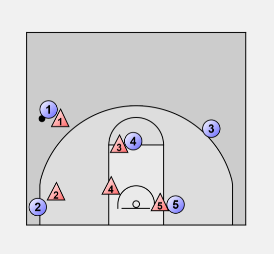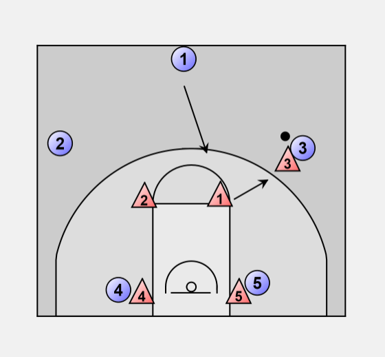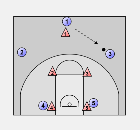 1 passes the ball to the 3. The defense should shift according to the ball.