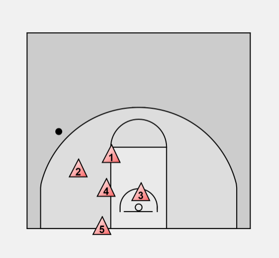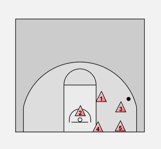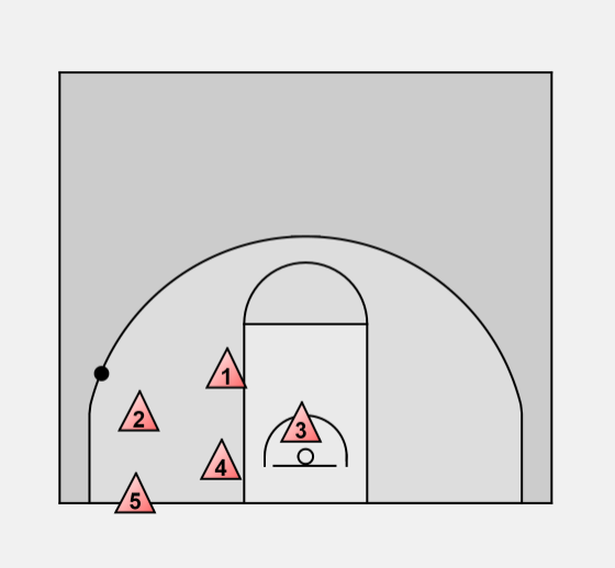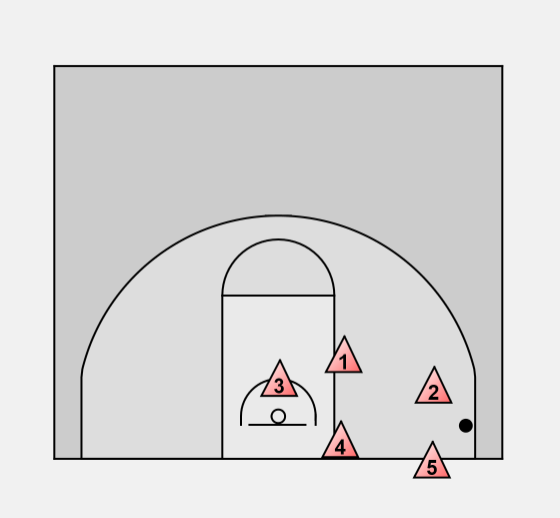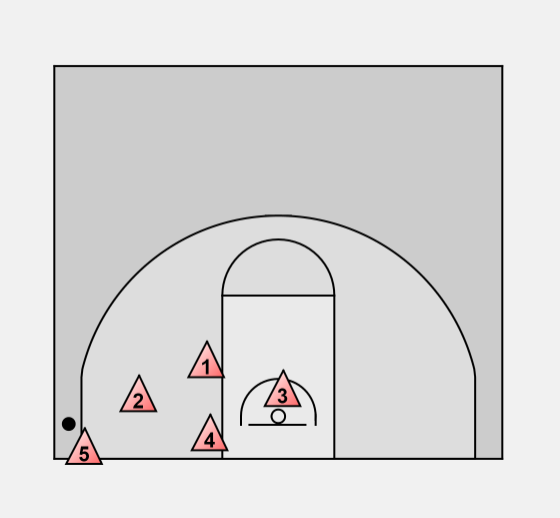 #3 moves up and in lane with ball never above foul line extended > cut off passing lanes inside foul extended