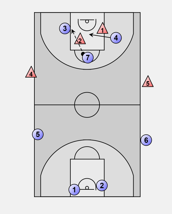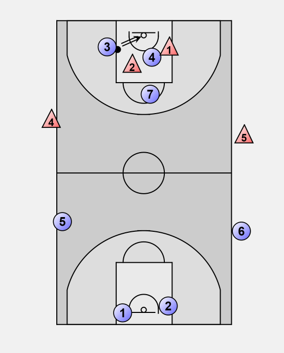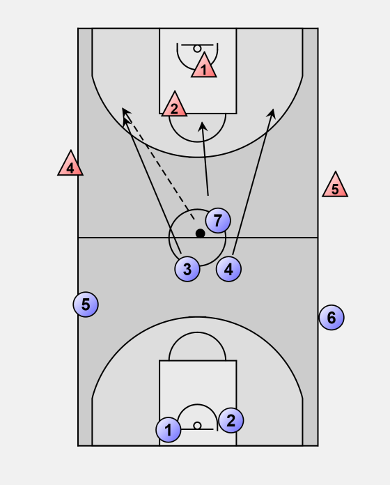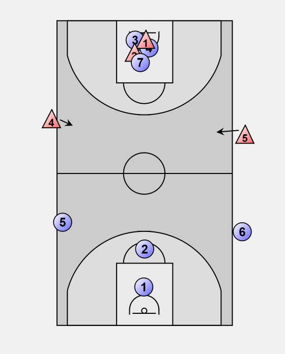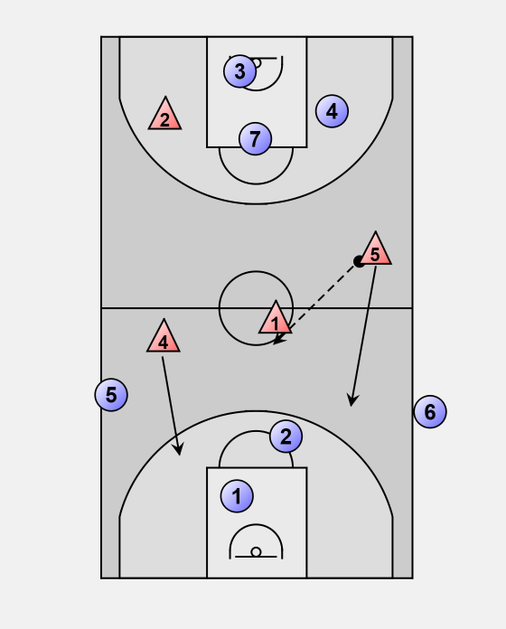 Two players in both keys, two outlets on every half, three players at mid-court with a ball.