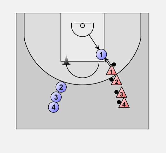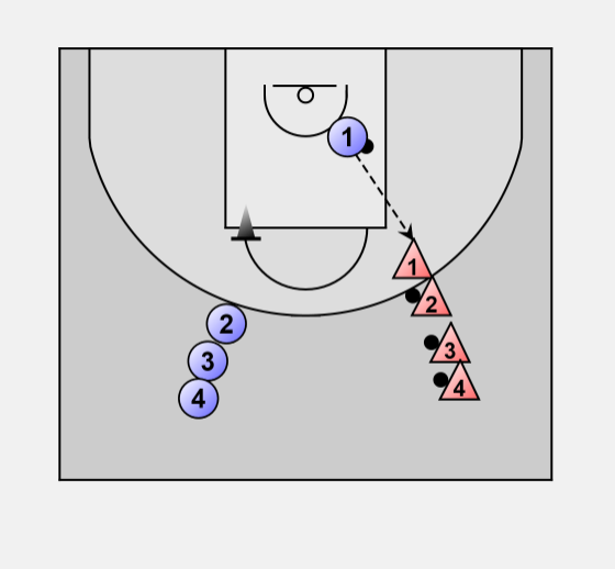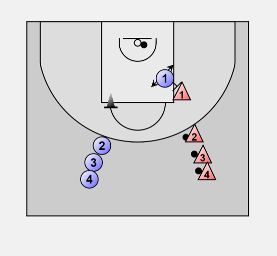 Create own rules of playing 1:1 then block out! - Attacker shot on the spot, after 1,2... dribbles, etc...