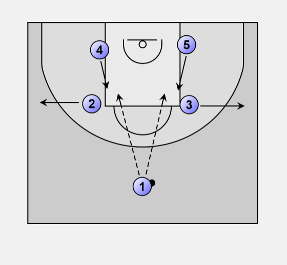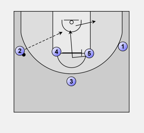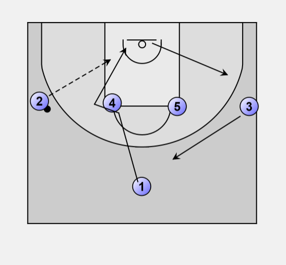 In case 5 didn't receive the ball the goes to the low post on the non-ball side.