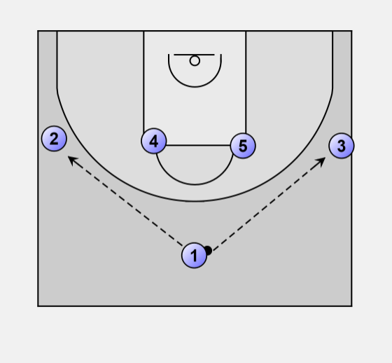 After the pass to 2, 1 cuts over the screen of 4 and if possible receives the ball from 2.