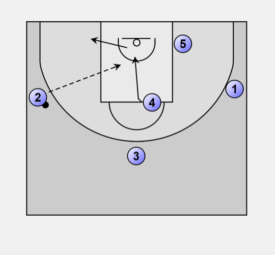 If 4 doesn't receive the ball he goes to the low post of the ball side.