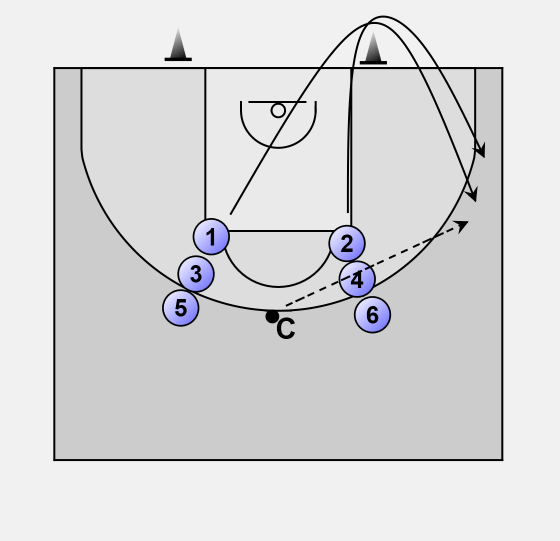 Coach calls "go", "left" or "right" and players 1 and 2 sprint around the appropriate cone on the baseline out to the wing spot.