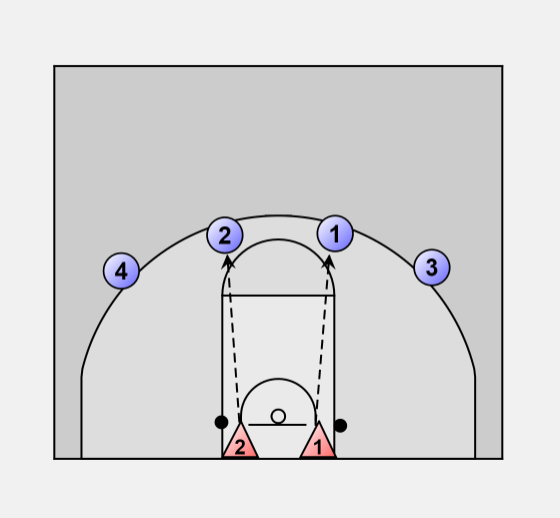 1. From behind the baseline D1 and D2 pass to O1 and O2 respectively.