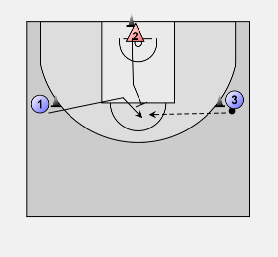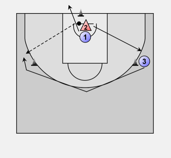 2 takes the rebound and passes to 3 who already took the place of 1.