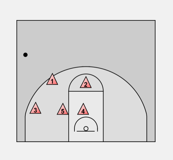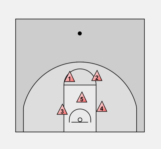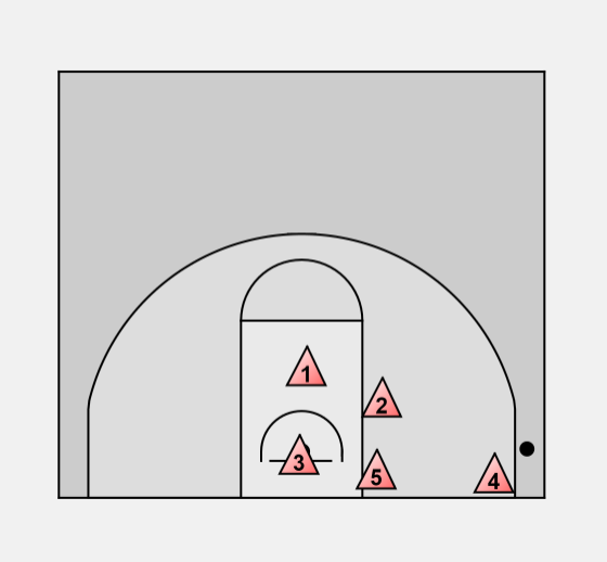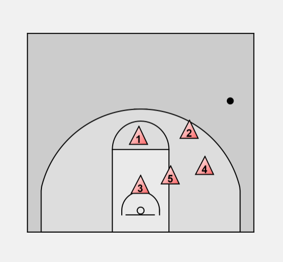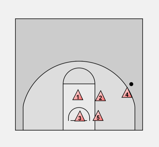 X5 halfway position > assist with high post > cuts off any pass to low post