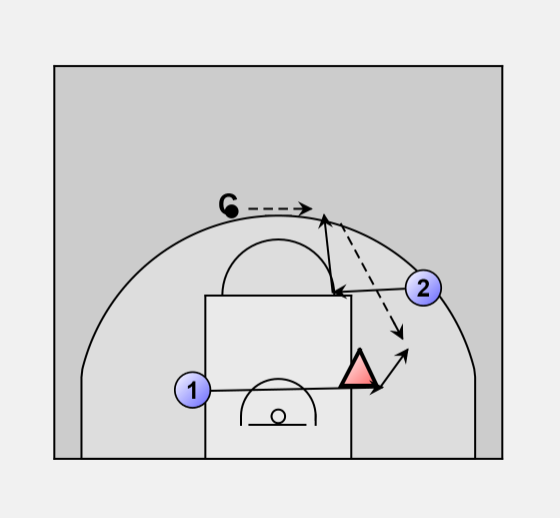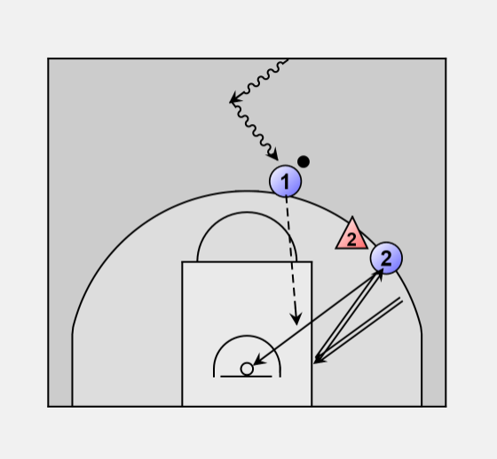 2) O1 feints and cuts to the basket