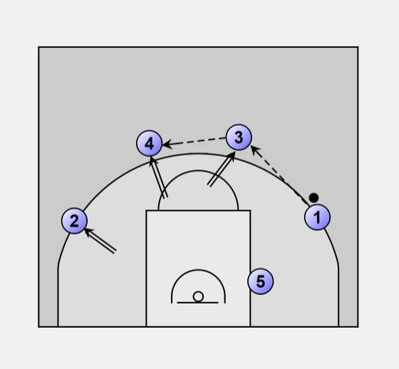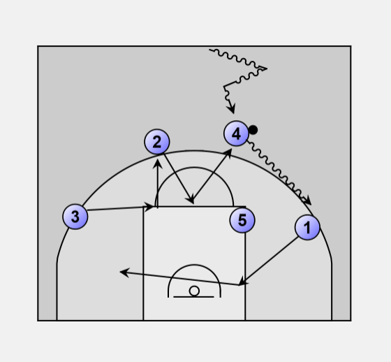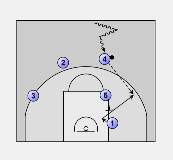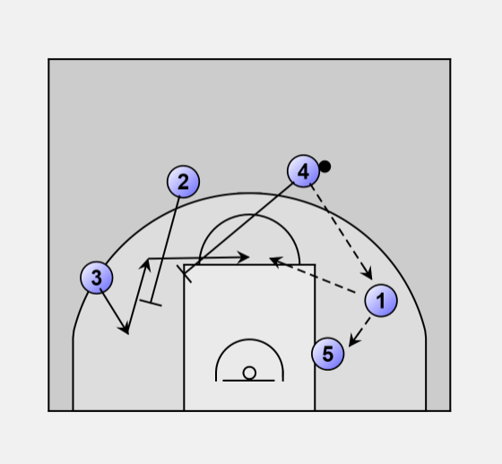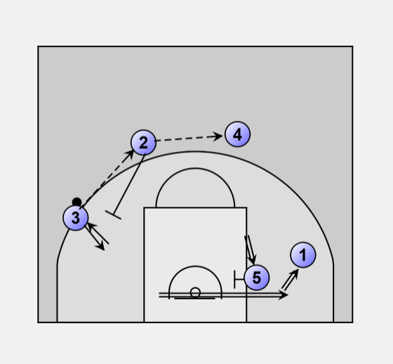 5. - Shot fake followed by pass to O1 for lay-up or post-up.