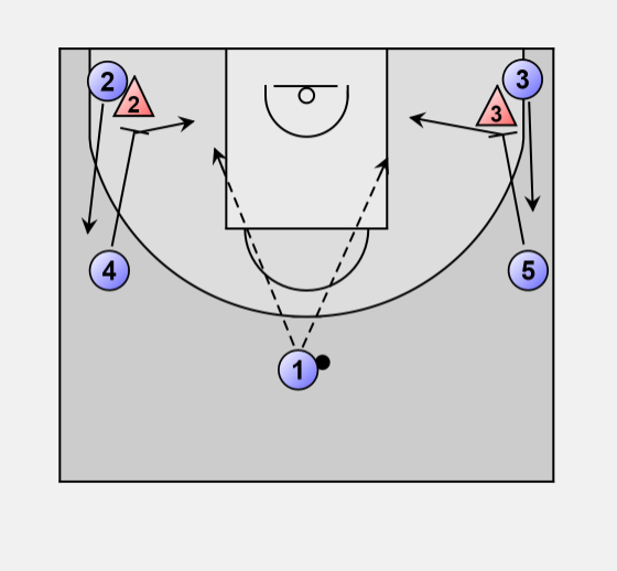 3 gets the ball and goes for a lay-up/1-1 or the short jumper.