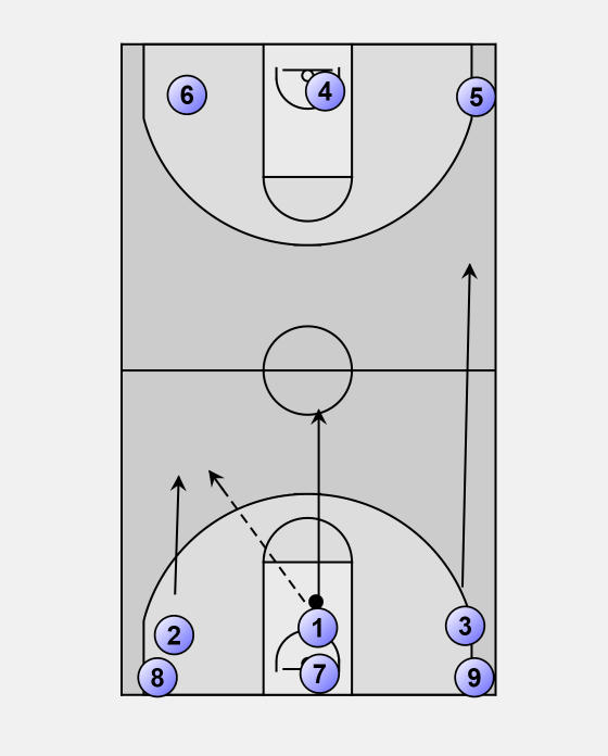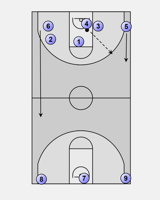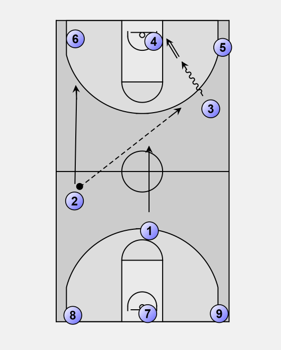 1 & 2 stay in lanes and get inside the 3 point line before the shot is taken