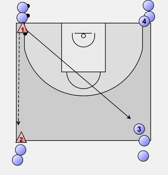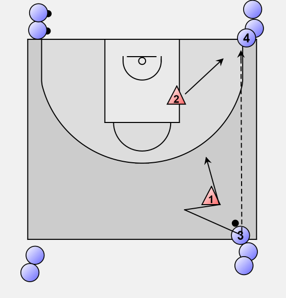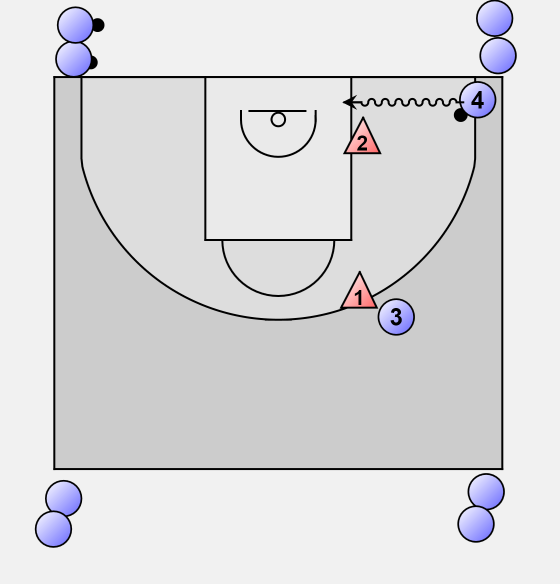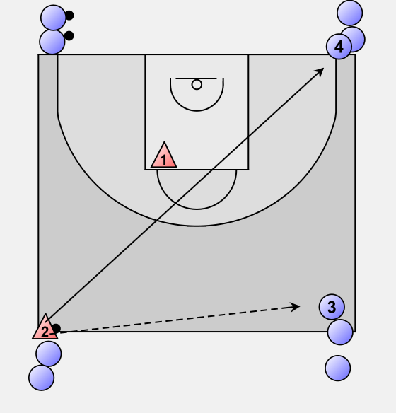 • As soon as player 4 receives the ball he tries to go to the basket, player 2 must play defense.