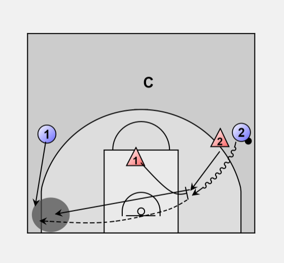 Coach (C) passes to the wing (1). /1\\ must close out high side (no middle penetration).