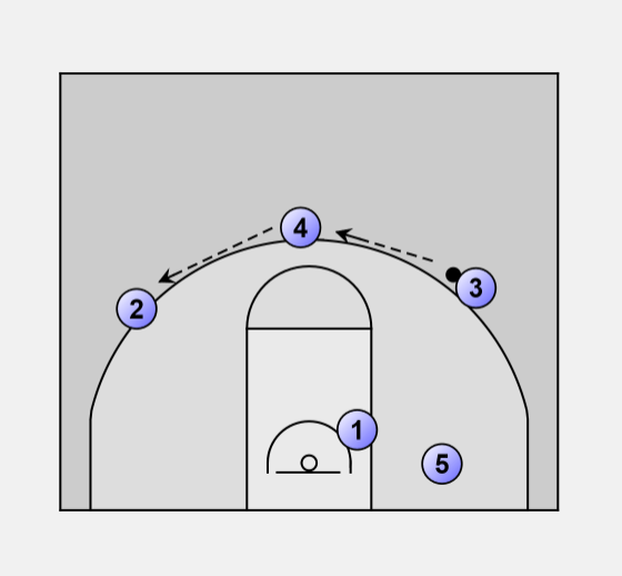 After passing to the wing, (1) will set a screen for (2) and (4) will set a screen for (2).