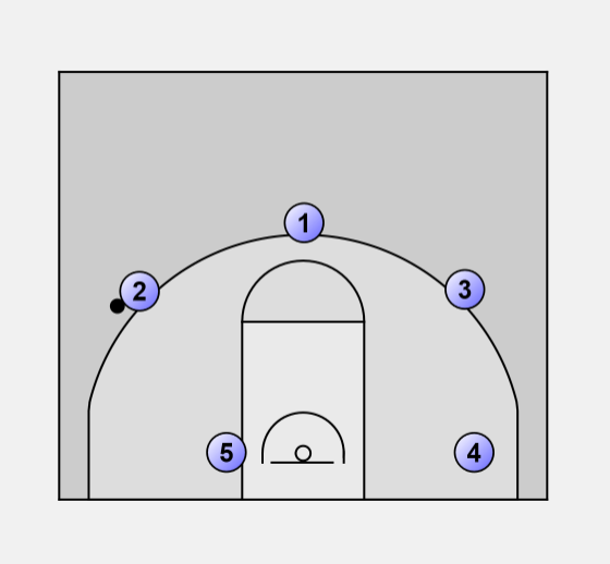 (2) will set a screen for (3) who will cut to the basket looking for a pass from (4). (3) should also be alert for (1) being open, if (1)'s man helps on (3).