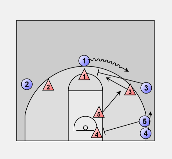 5 man - as soon as your man leaves to help on #1 coming off screen , go screen #4 to free up 3 pointer for #4 offensive man.