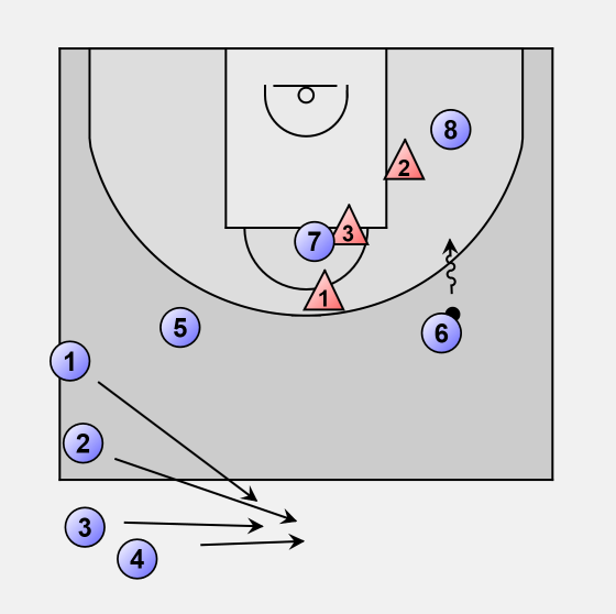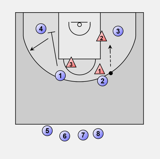 This is a 4 (offense) on 3 (defense) half-court drill.