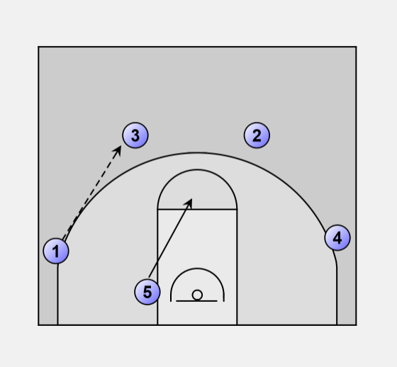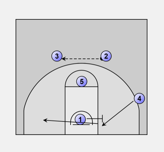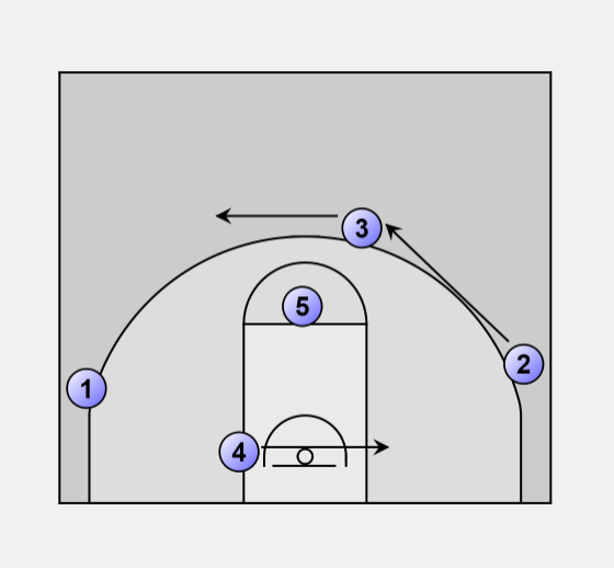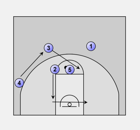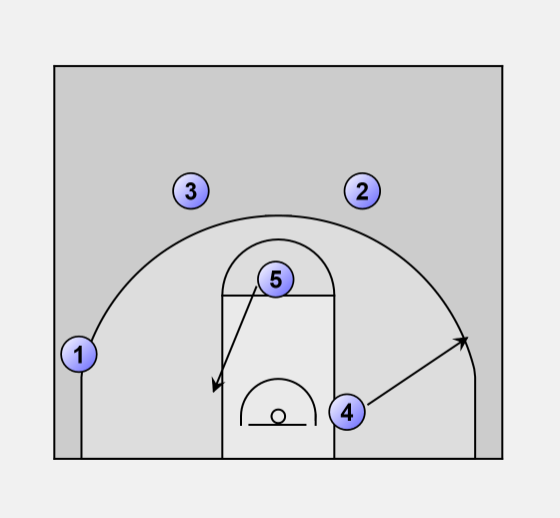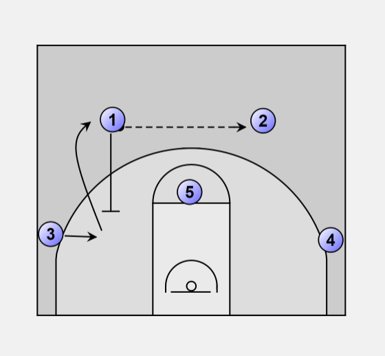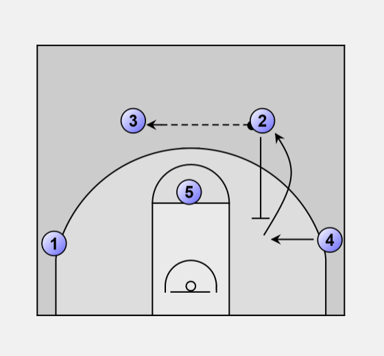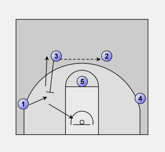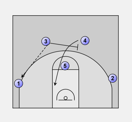 If the pass goes from wing to corner, the guard will set a screen for the opposite guard.