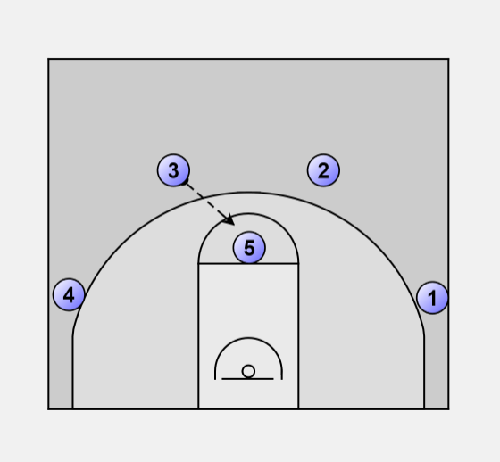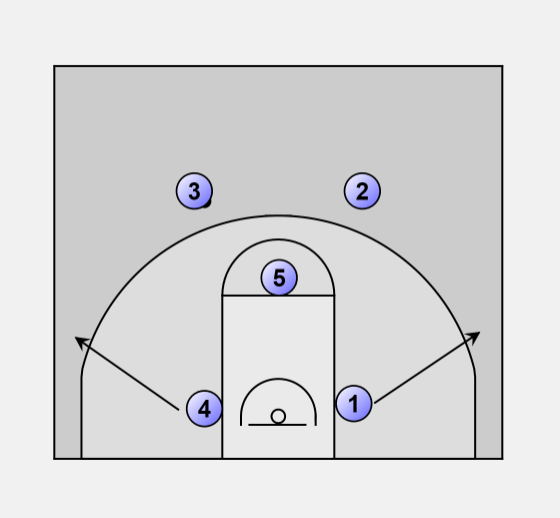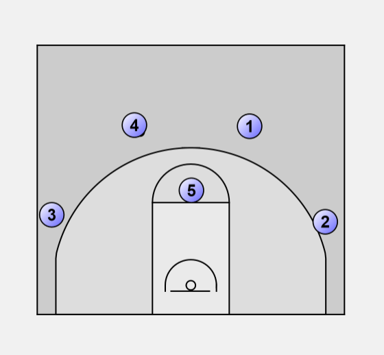 The two players that are at the top of the key I will refer to as the guards. The two that are right below the free throw line extended will be called the corners and the 5 player will be called the center.