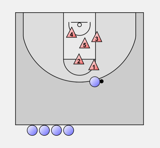 Ball handlers are not guarded outside their shooting range - the defender responsible for the ball should not go out any further than the limit of the player's shooting range.