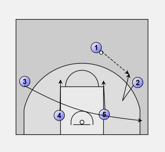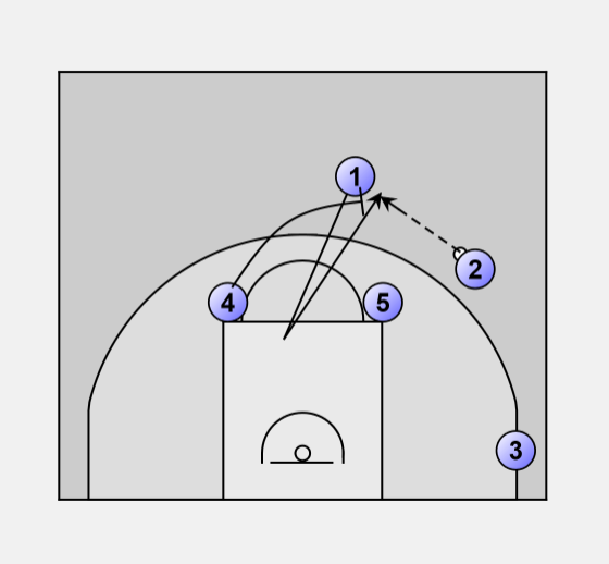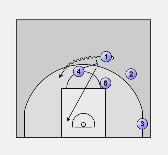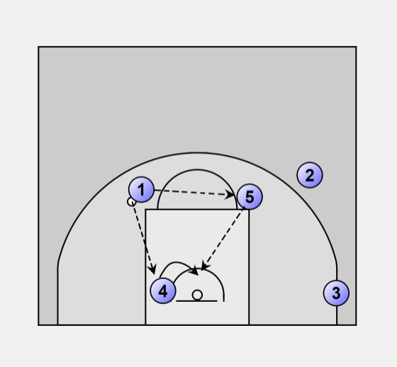 1 attacks the elbow, looking for a pass to the rolling 4.