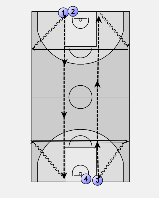 Start at base line jog full length of court.