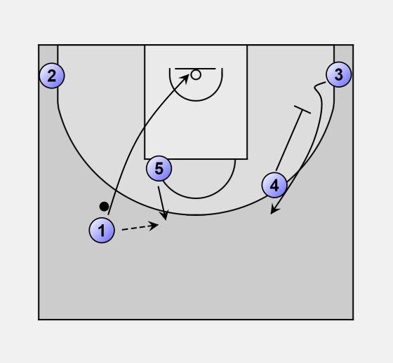 After the pass 4 sets a down screen for 3.