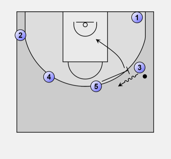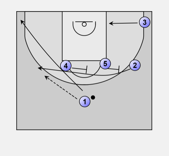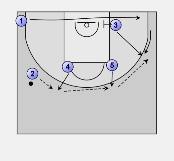 2 uses the (staggered) screens from 5 and 4 to get free on the other side of the court.
