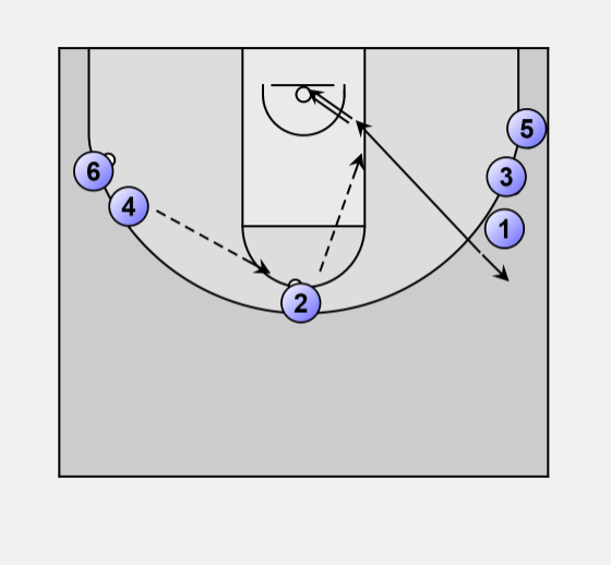 A fast paced back cut drill designed to get a lot of shots up at the basket using weak side exchange with a strong emphasis on teamwork.